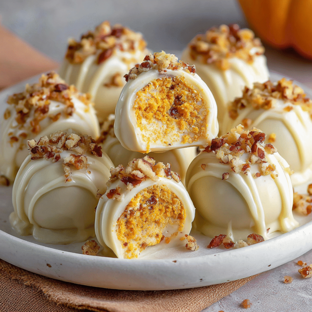 Chocolate truffles originated in France in the late 19th century, inspired by the luxurious black truffle mushroom due to their similar shape. Over time, bakers adapted the concept, creating endless variations with creamy centers coated in chocolate. Cheesecake truffles are a modern twist, bringing the richness of cheesecake into bite-sized indulgence. By combining pumpkin, warm spices, and a white chocolate shell, these truffles become a festive autumn treat perfect for holiday gatherings.